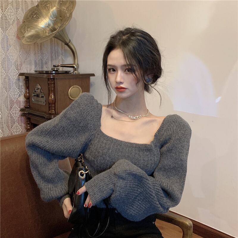 デザインニット レディース 送料無料 3色 リブニット トップス ニット トラペーズネック スクエアネック ニット スリット セーター 長袖 パフスリーブ ランタンスリーブ 切り替えデザイン リブ 大人可愛い きれいめ 上品 モード系 エレガント グレー 高見え 格上げ インスタ映え 春 秋冬 大人 かわいい おしゃれ 普段使い デイリー お呼ばれ お出かけ デート オフィス 通勤 通学 旅行 パーティー 二次会 トレンド