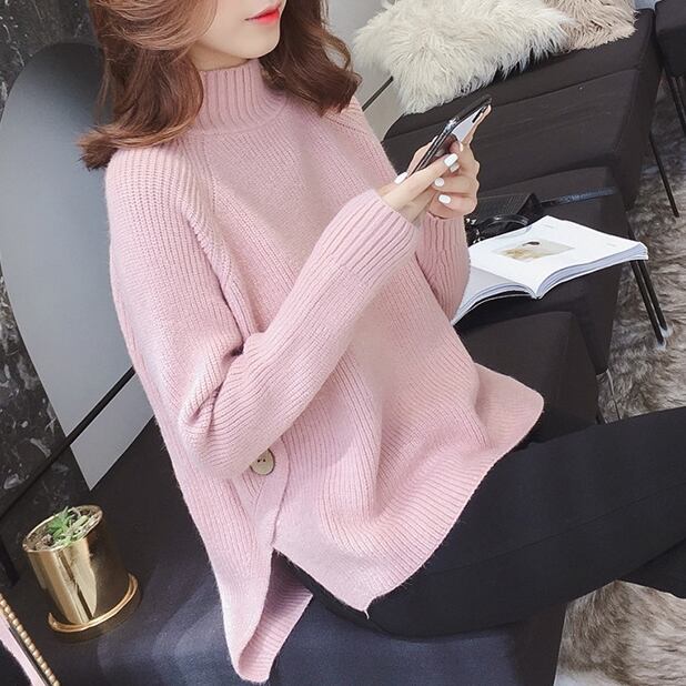 トップス レディース 送料無料 5色 タートルネックセーター スウェット プルオーバー リブニット ボタン ハイネック スリット オーバーサイズ サイズリブ ハイネック 大きいサイズ ゆったり ビックシルエット サイドスリットハイネックニット ハイネックニット リブニット 無地ニット サイドスリットニット ゆったりニット ミディアムニット ニット カジュアル 無地 シンプル 休日 デート ランチ ママ友 20代 30代 秋 冬 あったか 韓国 韓国ファッション オルチャン