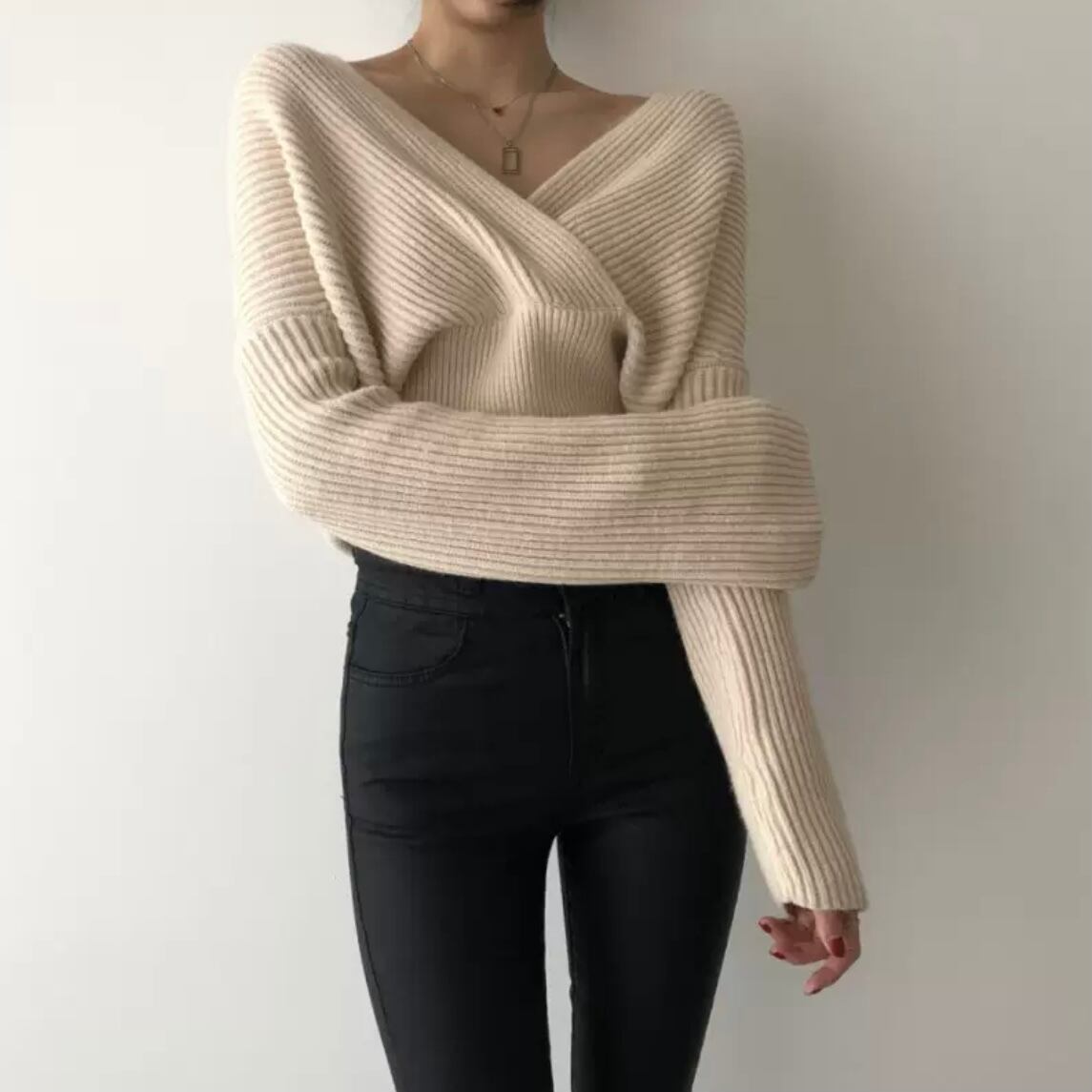 2色 ニット セーター Vネック クロス ボリューム袖 送料無料 レディース 大人可愛い かわいい きれいめ 大人女子 エレガント 肌見せ デコルテ 無地 春 秋 冬 ガーリー 10代 20代 大人 学生 長袖 お出かけ 外出 きれいめカジュアル 着回し ファッション デート コーディネート 重ね着 休日 お祝い 記念日 メンズウケ カジュアル 普段着 春コーデ 秋コーデ 冬コーデ おしゃれ シンプル スタイル ゆったり 細見せ オフィスカジュアル 30代 オフィス ワンポイント ママ ママコーデ