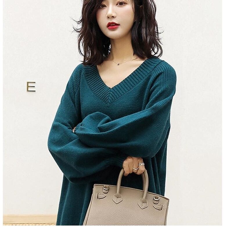スカラップ襟がレトロで高級感漂うロングニットワンピースです。