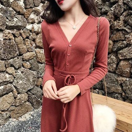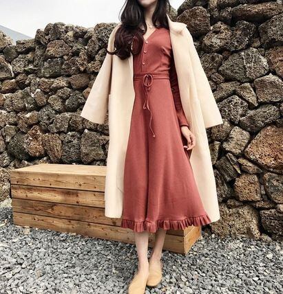 軽やかなレース裾切り替えがフェミニンなニットワンピースです。