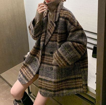 チェックコート レディース 送料無料 2色 チェック トラッド ジャケットコート ダブルブレスト ミディアム丈コート ピーコート ビッグシルエット オーバーサイズ アウター コート ジャケット ミディアム丈 大人可愛い きれいめ 上品 レトロ マニッシュ キュート ガーリー エレガント ブラウン 重ね着 高見え 格上げ インスタ映え 春 秋冬 大人 かわいい おしゃれ 普段使い デイリー お呼ばれ お出かけ デート オフィス 通勤 通学 旅行 トレンド