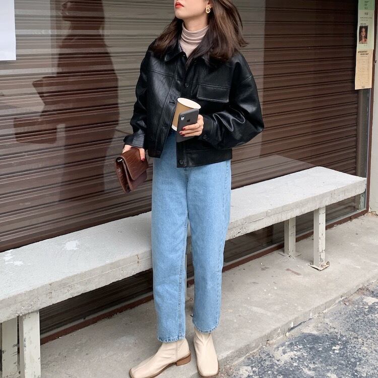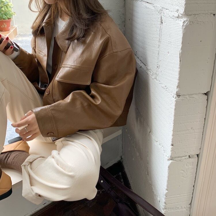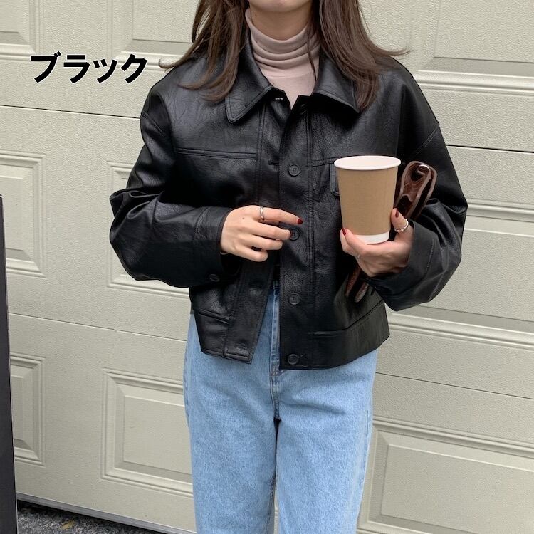 カジュアルなメンズライクさが可愛いフェイクレザージャケット。
