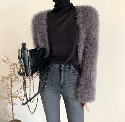 アウター レディース 送料無料 2色 カーディガン ショートジャケット クロップ丈 モヘア シャギーニット フェイクファー もこもこ 体形カバー インスタ Vネック オーバーサイズ カジュアル かわいい レトロ キュート ガーリー ホワイト ライトブルー ブラック ブラウンフリーサイズ 秋 こなれ感 ラフ 女子会 お出かけ デート リゾート ゆったり リラックス ハイウエスト フェミニン レイヤード フリーサイズ ルーズ ゆるコーデ 千鳥柄 ノスタルジック マニッシュ ベスト 通学 学生