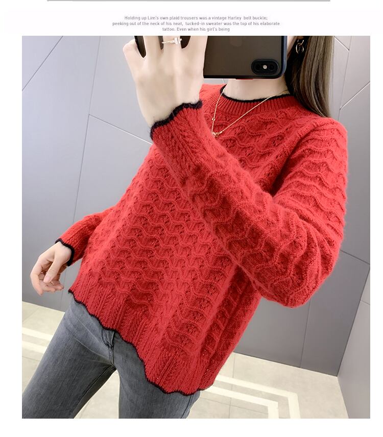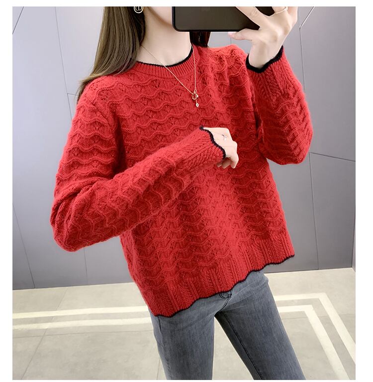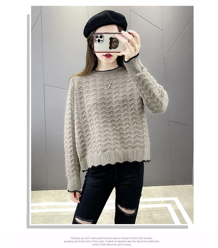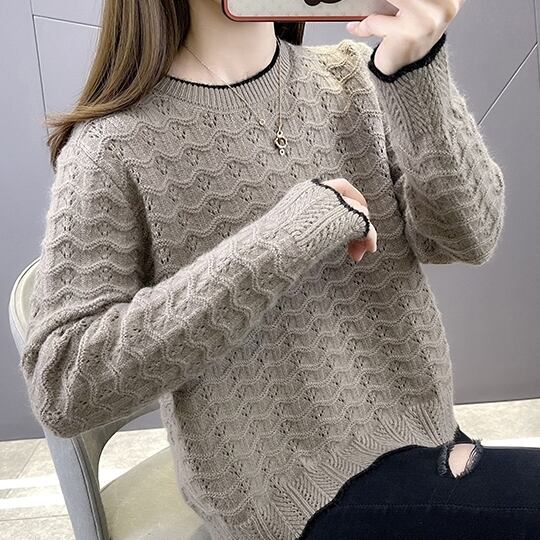 波模様の立体感がレトロな雰囲気漂う透かし編み風ニットです。