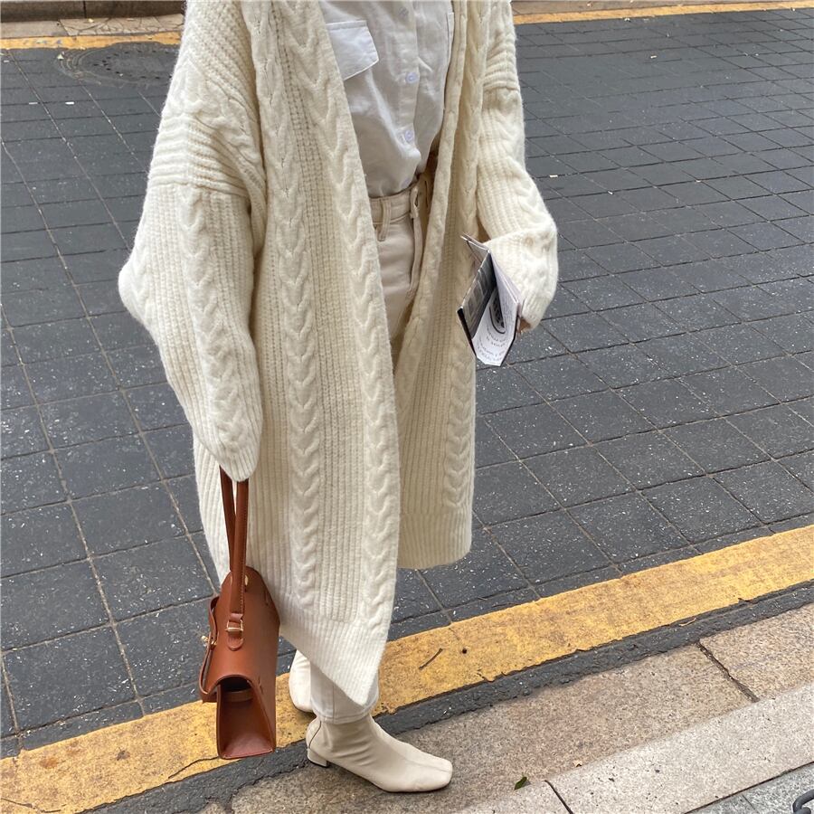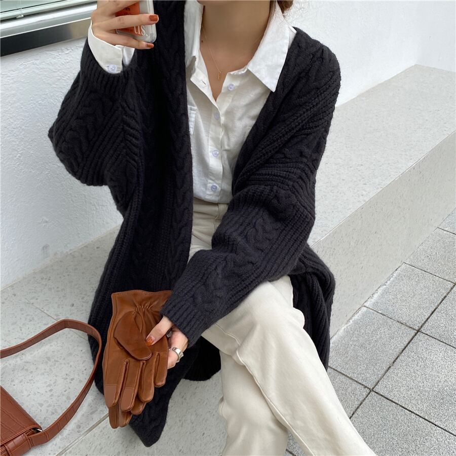 ハイゲージのもちもちとした肌触りが快適な着用感のロングニットカーディガンです。