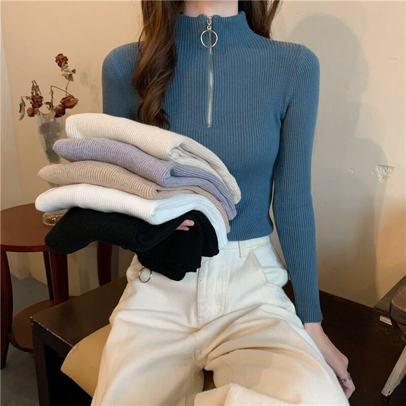リブ入りでタイトなシルエットが綺麗なラインを演出するジップニットです。