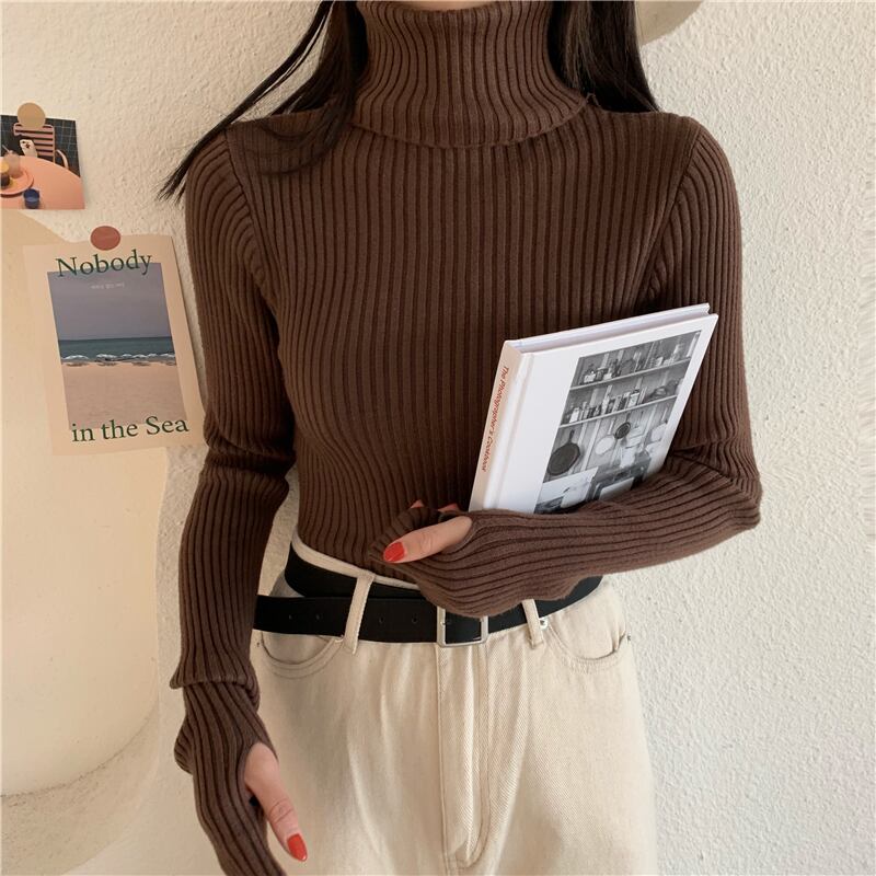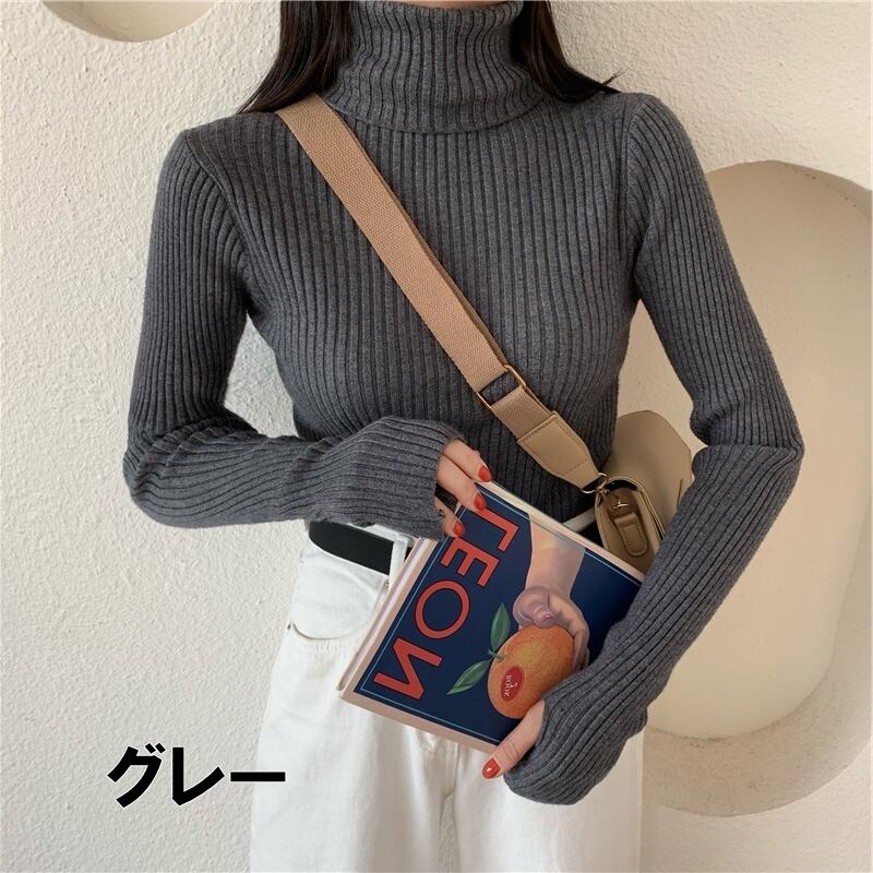 2重の首元が暖かいリブ入りハイネックニットソーです。