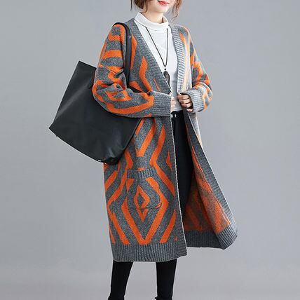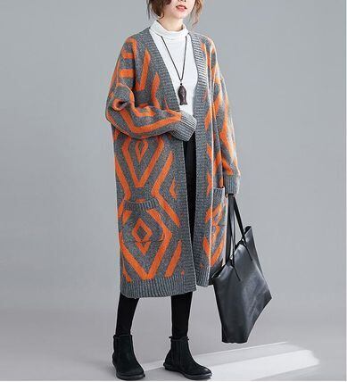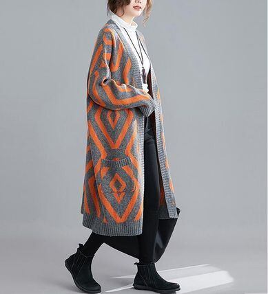 ロングカーディガン ガウン アウター レディース 送料無料 襟なし 長袖 幾何学 アウター ダイヤ ボヘミアン ハイゲージ ひざ下 もこもこ ロングニットコート ロングニット トップス カーディガン パーカー コート ジャケット ロングコート 切り替えデザイン フード付き 前開き ニット 大人可愛い きれいめ 上品 大人女子 こなれ感 エレガント 黒 ブラック グレー 重ね着 楽ちん 高見え 春夏 秋冬 大人 かわいい おしゃれ 普段使い デイリー お呼ばれ お出かけ デート オフィス 通勤 通学
