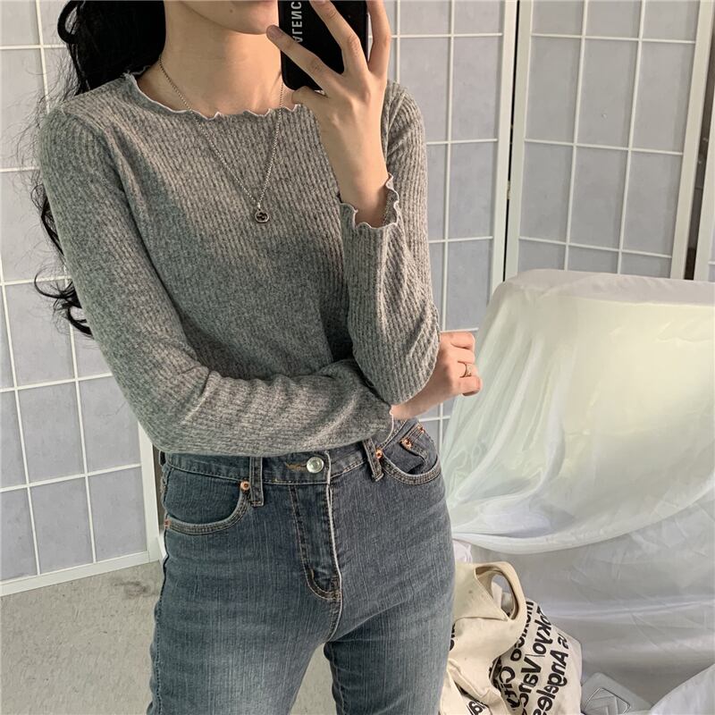 フリルのクルーネックがメロウな質感を醸し出す上品なニットソーです。