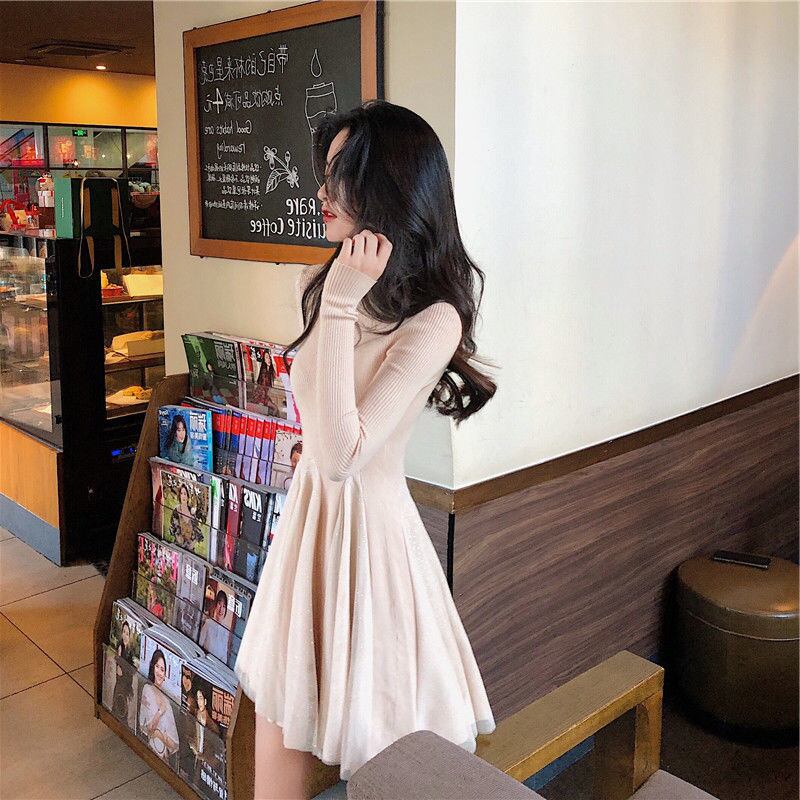 エアリーなシフォンスカート切り替えががフェミニンなニットワンピースです。