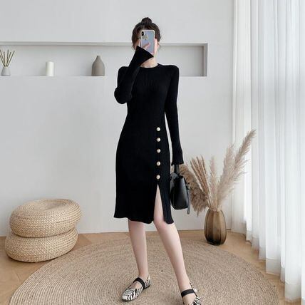 ワンピース レディース 送料無料 長袖 リブ フレア クルーネックワンピース カラバリ 3色 タイト アシンメトリー スリット ボディコンシャス サイドボタン メタルボタン ブラック ホワイト 黒 白 サイズ4展開 S M L XL タイト タートルネック ニット ワンピース カジュアル ミニワンピ ミニワンピース 細身 ミニ丈 無地 通勤 オフィス ビジネスシーン 休日 デート お出かけ ランチ 公園デビュー 20代 30代 40代 幅広い年代 秋 冬 着回し 長袖