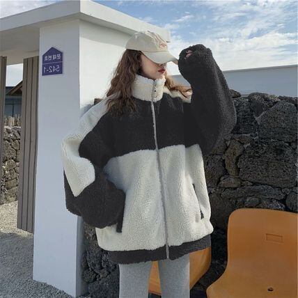 ボアブルゾン ジャケット レディース 送料無料 アウター コート リブ ライン バイカラー モノトーン シック ブルゾン ジャケット ムートン もこもこ コートスタンドカラー エコファーボリューム袖ジャケット ミディアム丈 襟付き オーバーサイズ ビッグシルエット 大人可愛い きれいめ 上品 レトロ 大人女子 こなれ感 キュート ガーリー ゆったり 白 ホワイト 重ね着 体型カバー モテ 高見え 格上げ インスタ映え 春 秋冬 大人 かわいい おしゃれ 普段使い デイリー お出かけ デート 通勤 通学