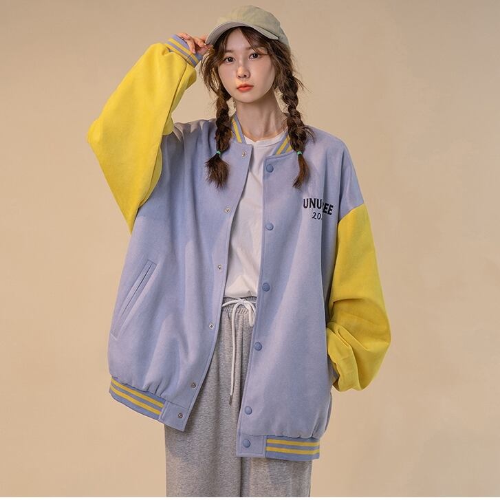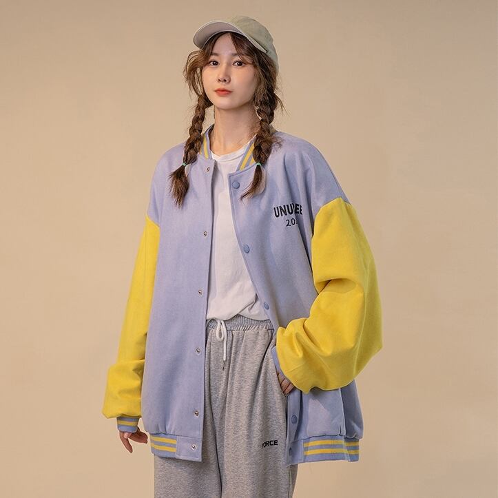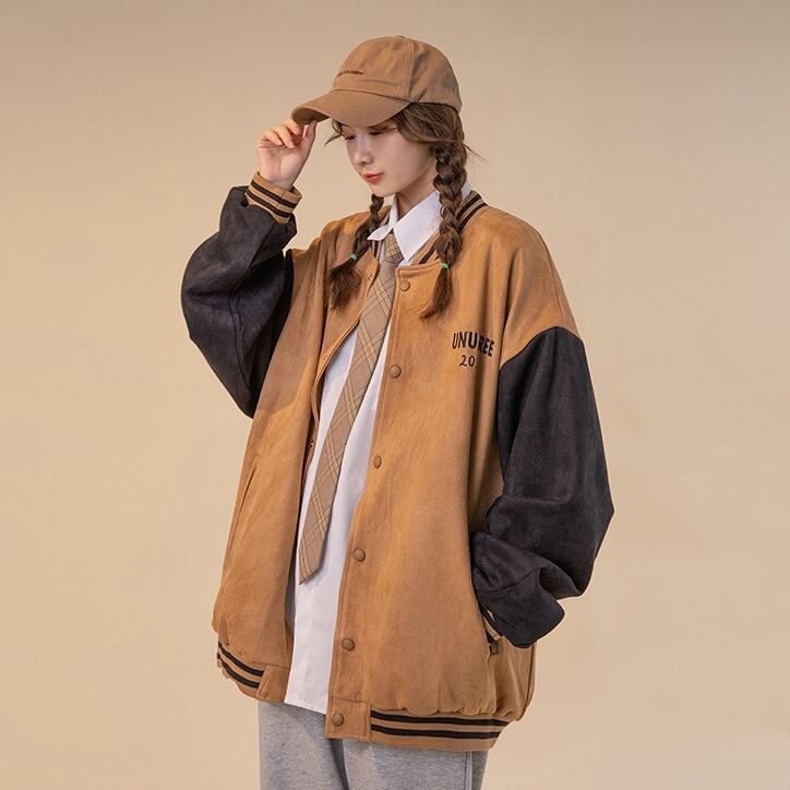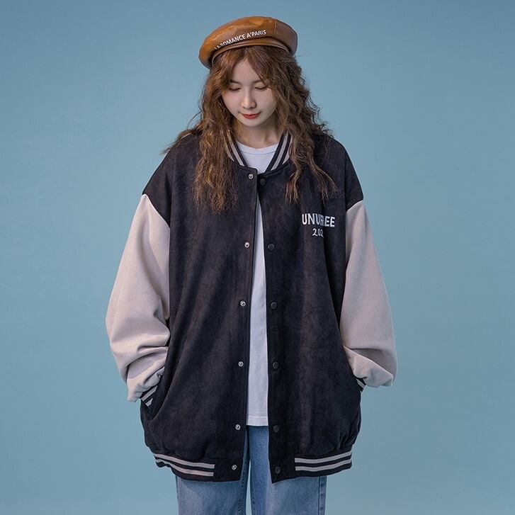 袖とボディの切り替えが可愛いストリートな雰囲気漂うスタジャンです。