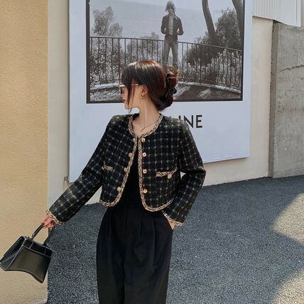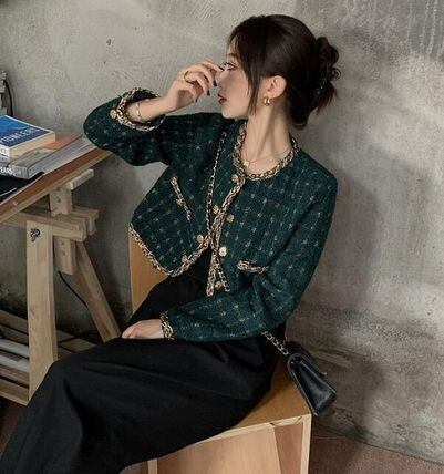 ツイードジャケット風のレトロでクラシカルなクロップ丈アウターです。