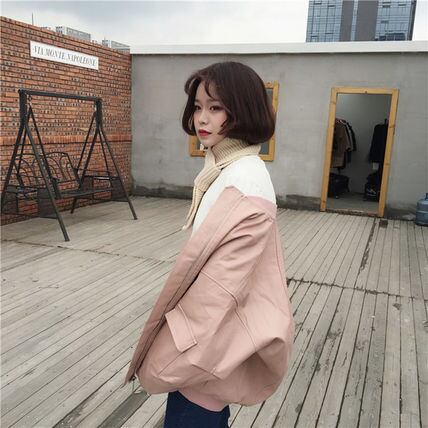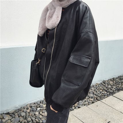 カジュアルなメンズライクさが可愛いフェイクレザージャケット。