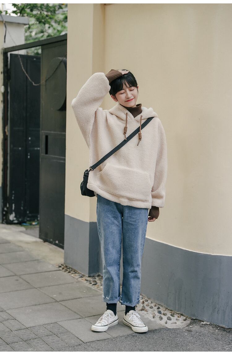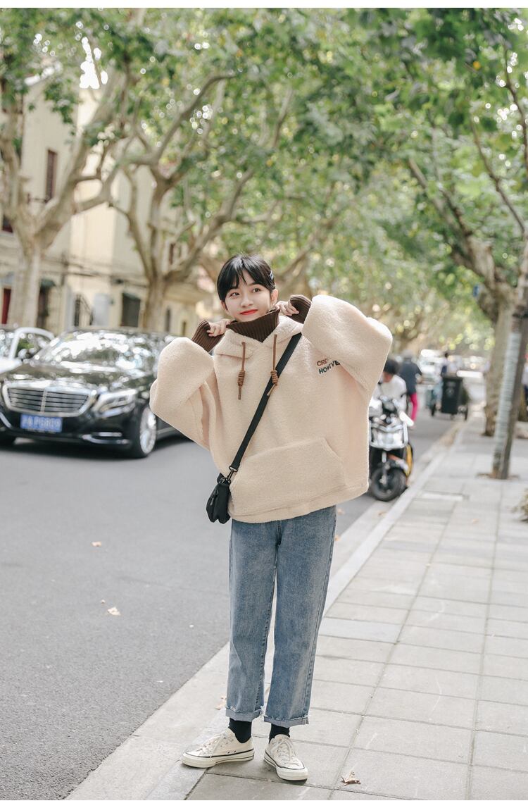 ハイネックニットとボアパーカーをレイヤードしたようなトップスです。