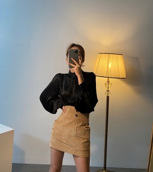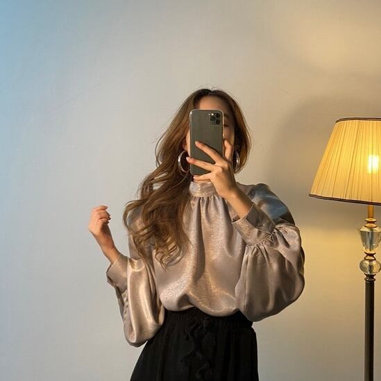 ボリューム袖がクラシカルなスタンドカラーシャツです。