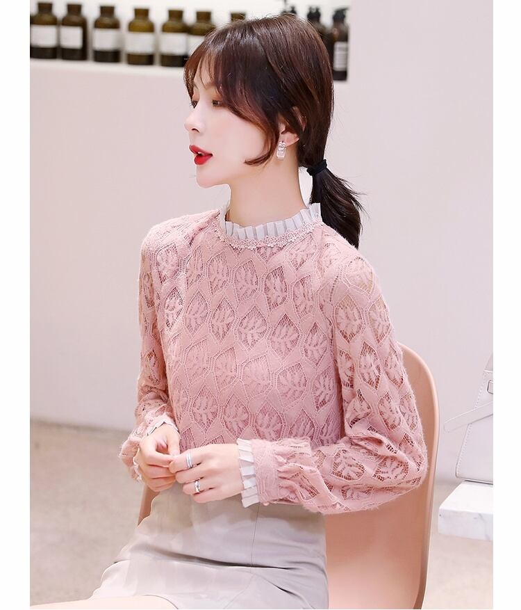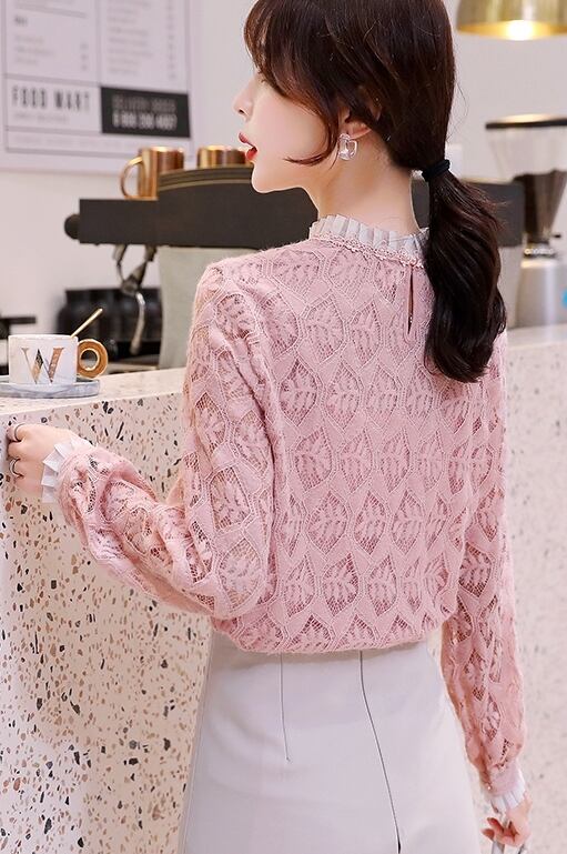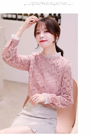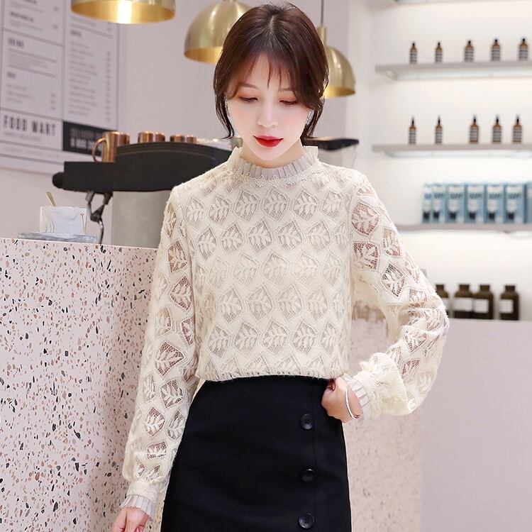 トップス レディース 送料無料 2色 長袖 ブラウス シャツ 透かし編み プリーツ フェイクレイヤード レース スタンドカラー レース襟 ハイネック スタンドカラー 大きいサイズ サイズ豊富 S M L XL 薄手 プリント かわいい 大人女子 きれいめ 大人 上品 お洒落 おしゃれ クール こなれ感 ルーズ ゆったり ゆる 着回し 普段使い コーデ ファッション 体型カバー 楽ちん デート お出かけ 休日 10代 20代 30代 学生 春 夏 韓国 オルチャン