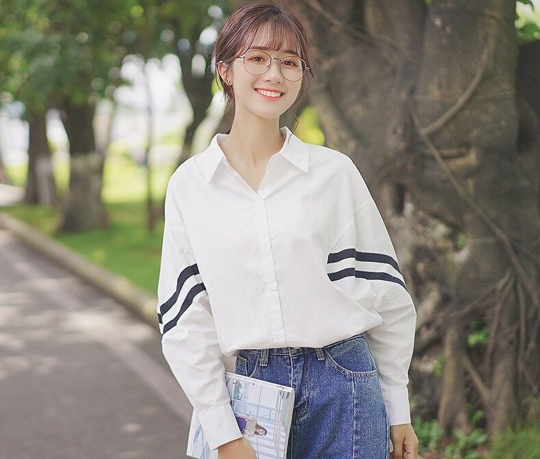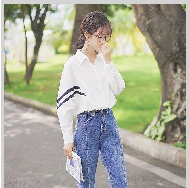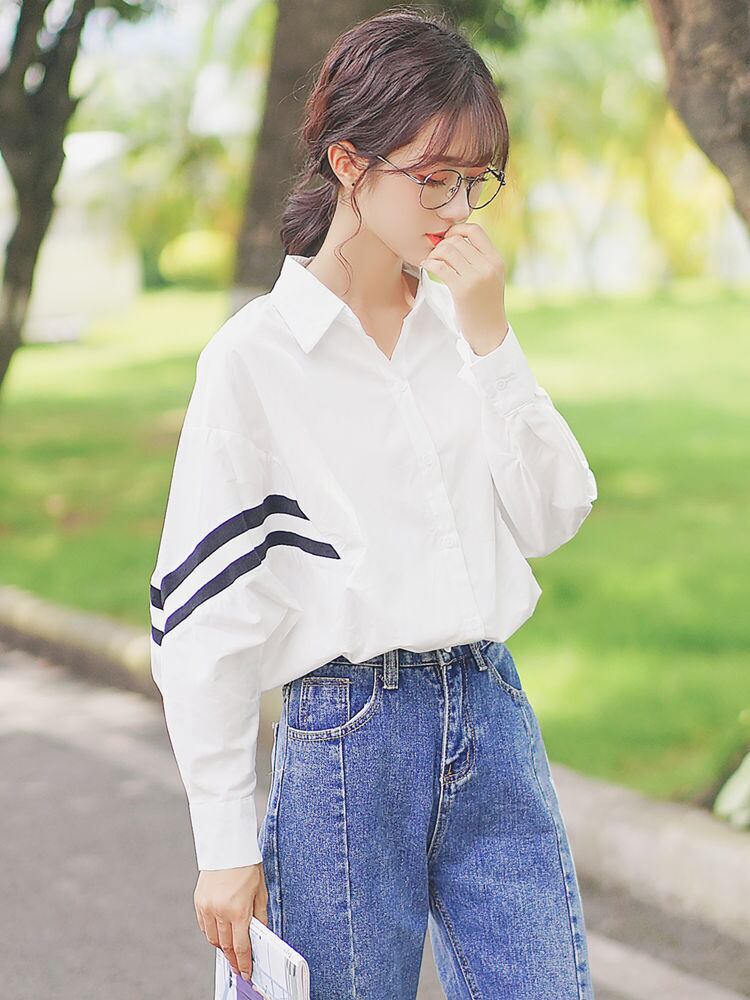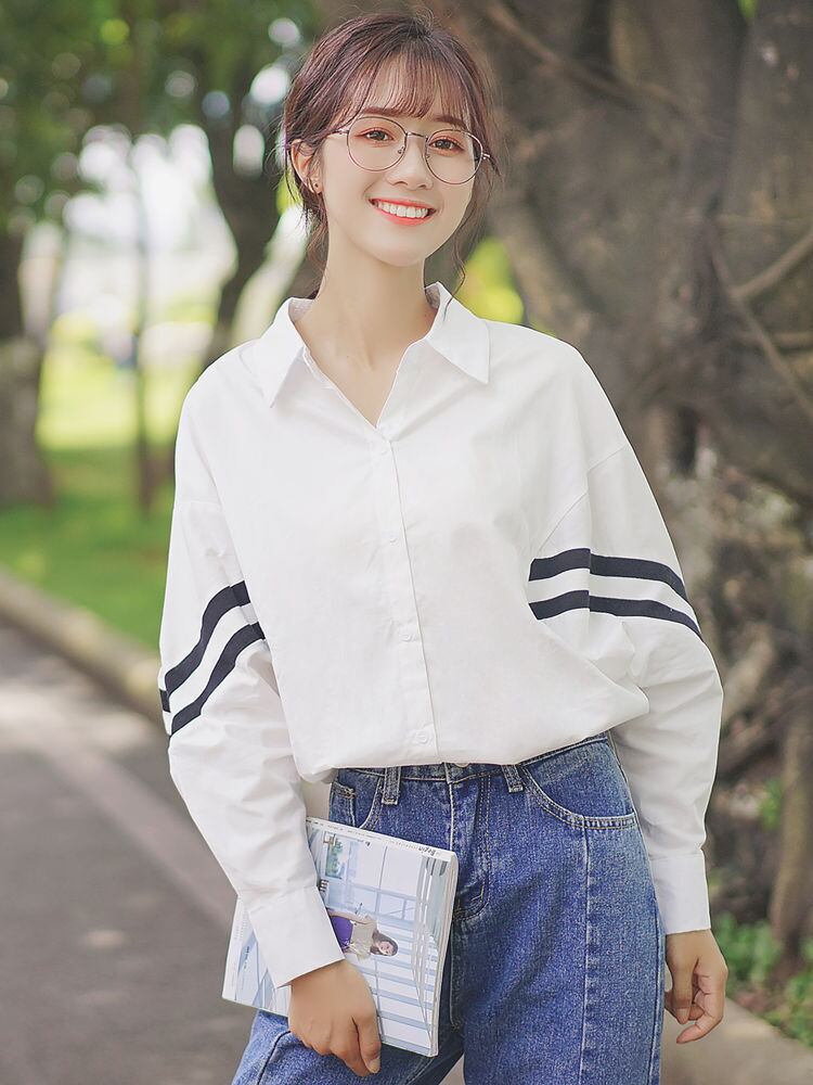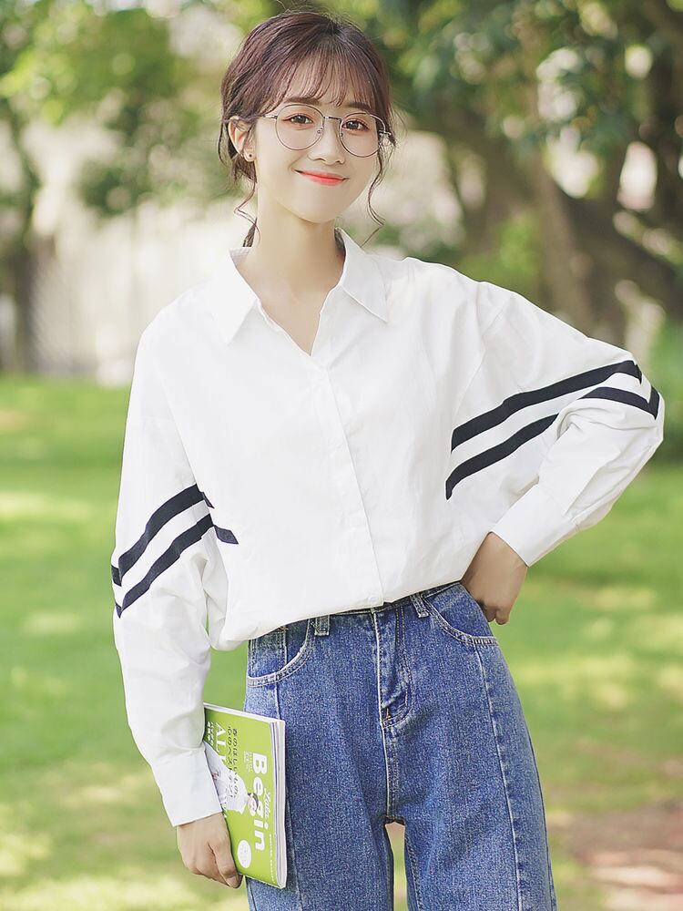 トップス レディース 送料無料 シャツ カラバリ1色 ホワイト サイズ2展開 S M ブラウス 白 長袖 ビッグスリーブ ライン ボリューム袖 個性的 カジュアル オーバーサイズ 体型カバー 春 夏 秋 ゆったり メンズライク おしゃれ 可愛い 韓国 白シャツ 白コーデ こなれ感 着回し トレンド ボタン 袖あり オルチャン