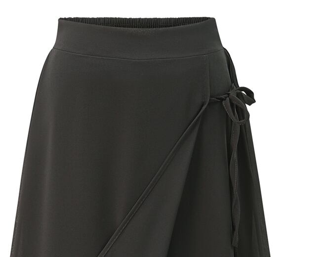 ボトムス ワイドパンツ スカート レディース 送料無料 フレアパンツ シフォン 七分丈 アンクル丈 透け感 ラップ 巻き ドローストリング アシンメトリー ブラック かっこいい 個性的 アンクル丈 モード系 存在感 モダン モノトーン ラップスカート Aライン ボリューム ロング丈 引き締め 着痩せ 黒コーデ パンク モノクロ メンズライク マニッシュ こなれ感 10代 20代 30代 ラフ クール ストリート カジュアル ドッキング セミフレア 巻きスカート ジェンダーレス ワイパン インスタ