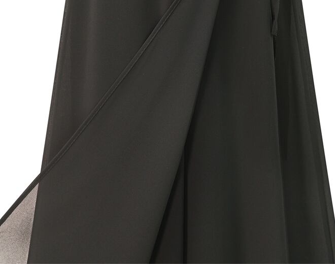 まるでスカートのようなシフォンがふんわり広がるワイドパンツ。