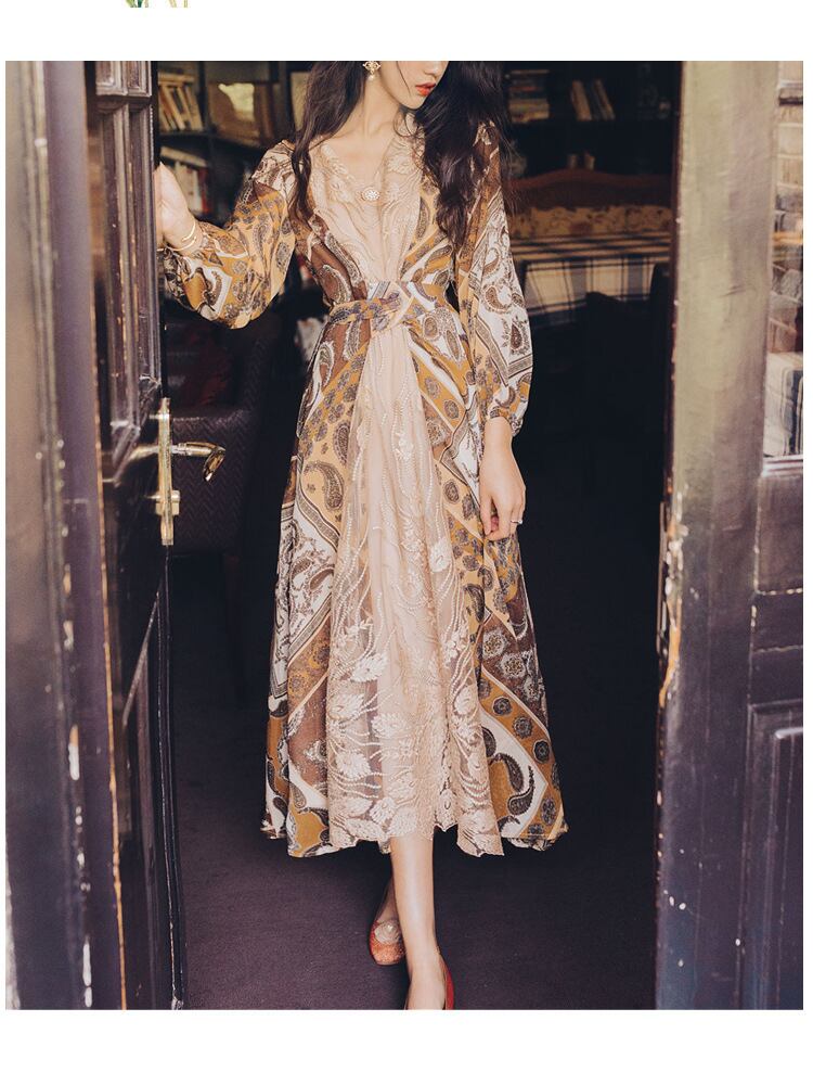 ワンピース ドレス レディース 送料無料 シャツワンピース フレア マルチカラ— レース ペイズリー エスニック ボヘミアン ワンピース ロング丈 バイカラー レイヤード 切り替え ロングワンピース マキシ丈 マキシワンピース Vネック 長袖 ロングスリーブハイウエスト 楽ちん ゆったり ゆる 大きめ体型カバー 脚長 とろみ感 こなれ感 抜け感 大人女子 きれいめ 上品 エレガント オーバーシルエット お洒落 おしゃれ 薄手 春服 夏服 秋服 20代 30代 40代 おでかけ 普段使い 重ね着