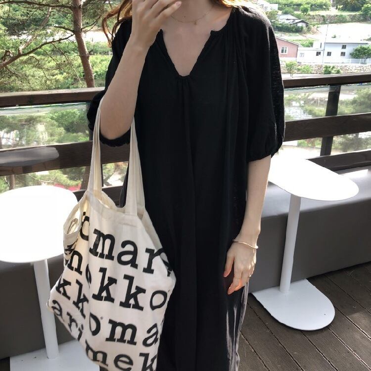 キーネックで洗練されたデコルテ周りの抜け感を作るワンピースです。