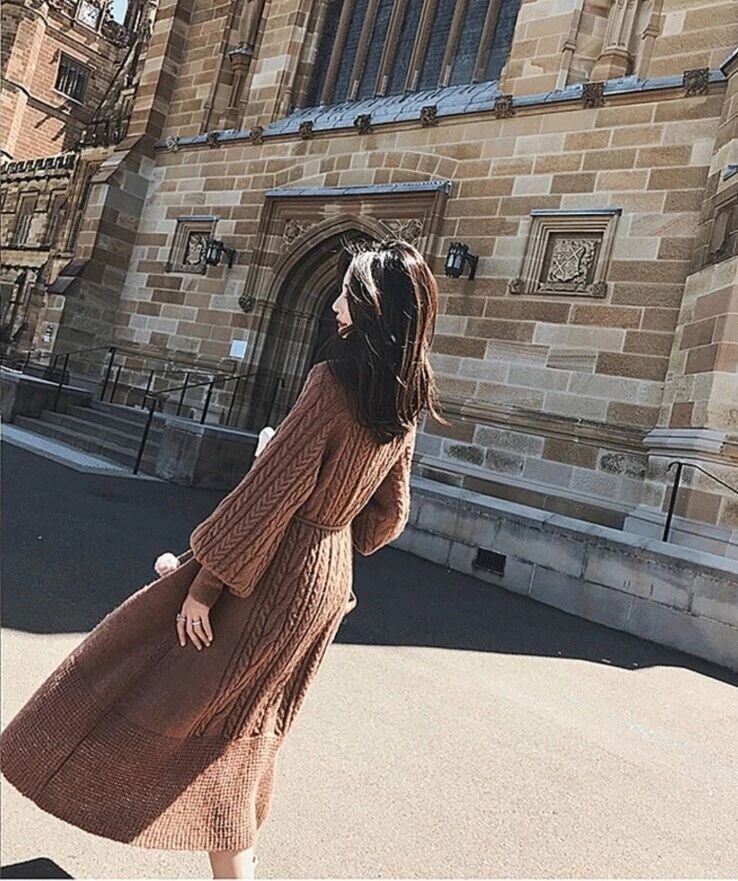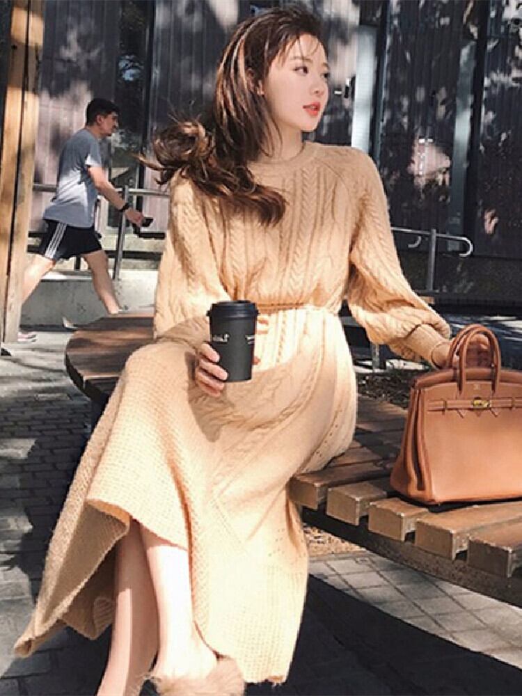 ワンピース レディース 送料無料 カラバリ3色 ブラウン オフホワイト キャメル サイズ4展開 S M L XL ニットワンピース フレアワンピース 秋冬ワンピース ワンピース ニット ドレス 膝丈 ミモレ丈 長袖 ボリューム袖 10代 20代 可愛い きれいめ レトロ シンプル 無地 フレア Aライン 新作 秋 冬 通勤 OL 通学 学生 デイリー 日常 春 カジュアルスタイル エレガントスタイル