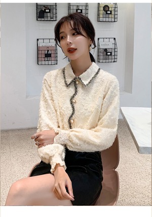 ふんわりシャギー起毛がフェミニンなシフォンシャツトップスです。