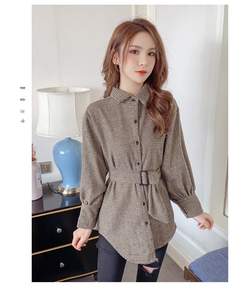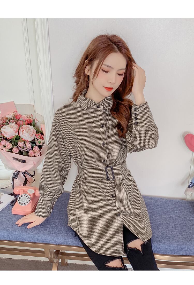 太めのウエストマークがシックな千鳥格子で仕立てたワイシャツです。