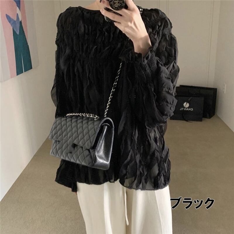 トップス レディース 送料無料 2色 ワンサイズ シャツ ブラウス レース ピンタック モード シャーリング 立体感 キャンディースリーブ シフォン ハイネック 長袖 春 夏 秋 10代 20代 30代 40代 襟なし 重ね着 プリーツ シャーリング 総レース おしゃれ きれいめ ブラウス コーデ デイリー オフィス ビジネスシーン 大人可愛い 韓国ファッション 韓国 オルチャン