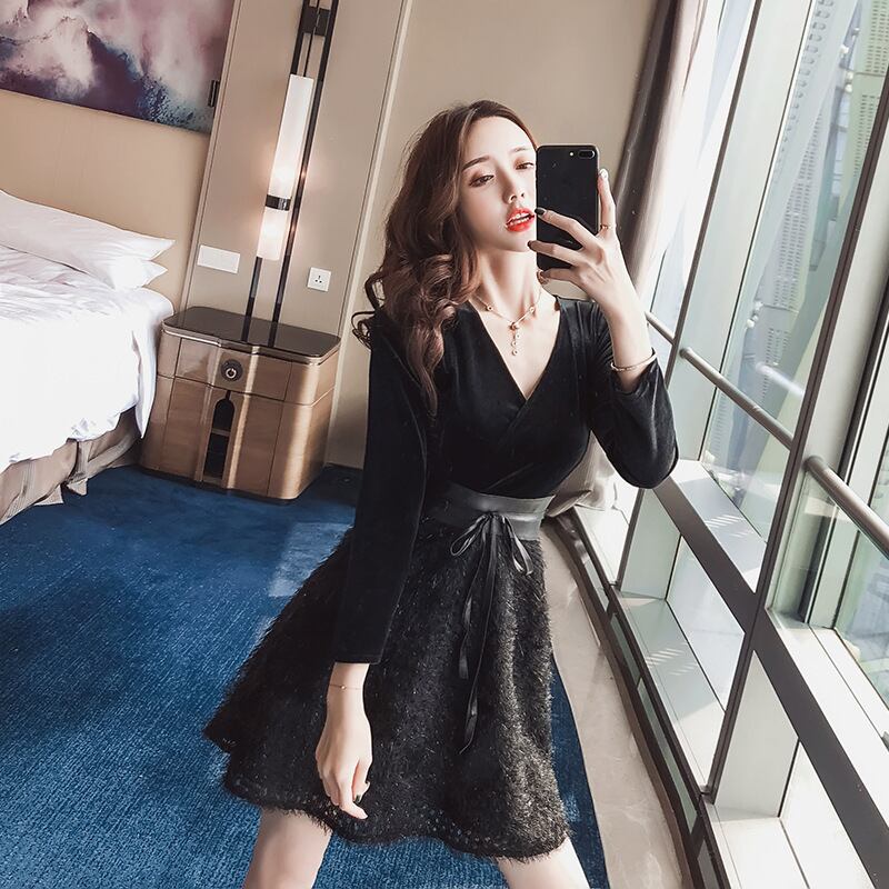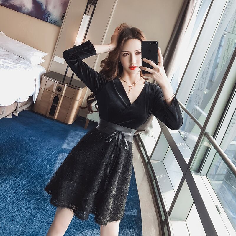 ワンピース レディース 送料無料 ブラック サイズ3展開 S M L パーティードレス ミニ丈 ミニドレス タイトスカート フレアスカート キャバ ミニワンピース セクシー キャバドレス ミニ 膝丈 結婚式 お呼ばれ 袖あり 春 夏 10代 20代 30代 エレガントスタイル Vネック