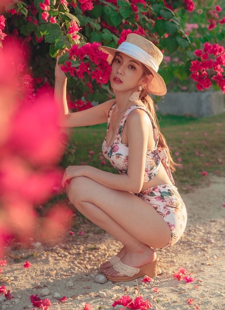 フロントのカットアウトがセクシーでバックの大きめリボンがフェミニンな一着です。