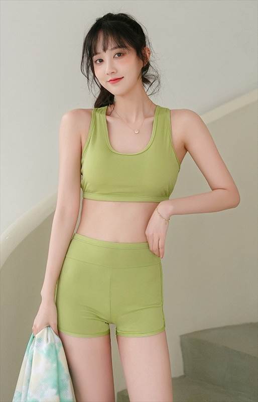 さっと羽織れる涼し気なメッシュトップスとシンプルタンキニが着回しやすいセットです。