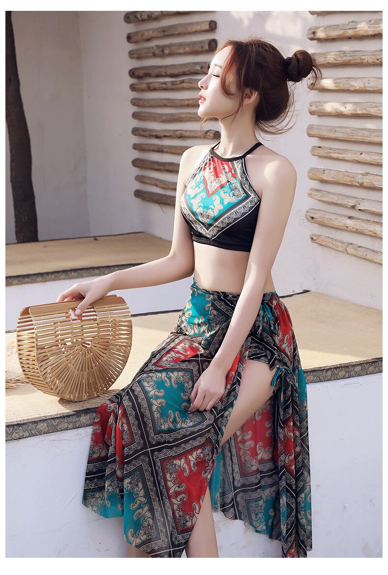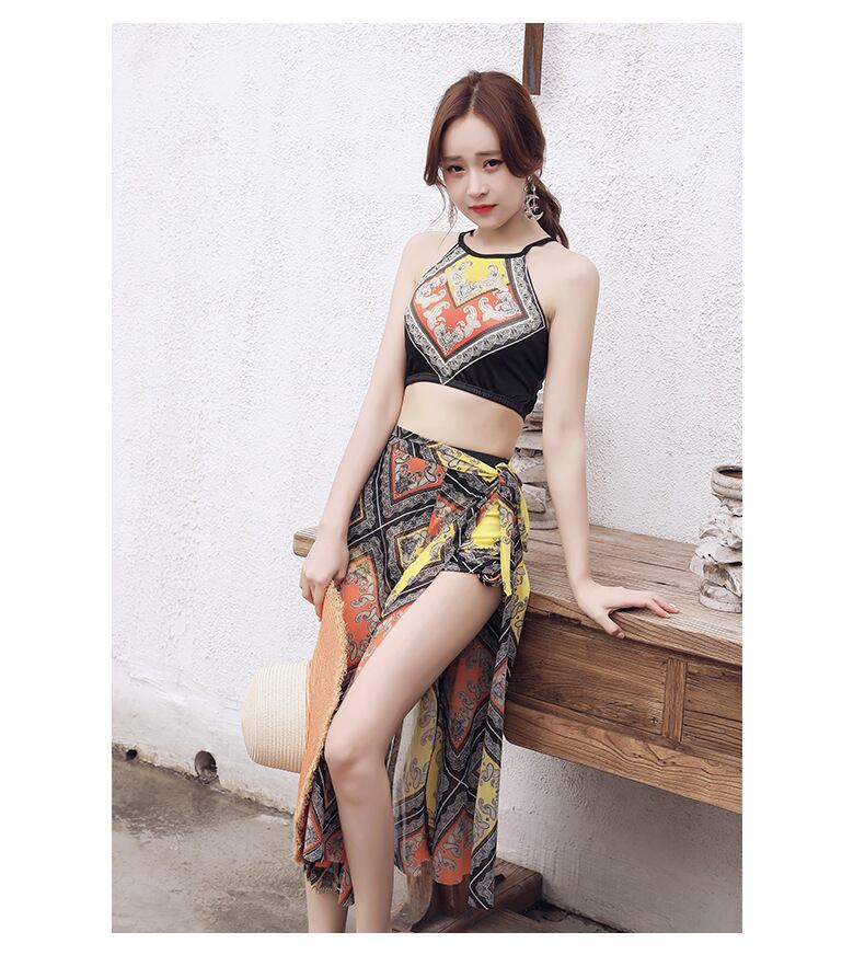 水着 レディース 送料無料 カラバリ2色 ブルー イエロー サイズ3展開 M L XL ビキニ 3点セット エスニック アジアン おしゃれ パレオ ハイネック バッククロス ボクサーパンツ 腰巻 スリーピース ハイウエスト リボン アジアン 個性的 韓国 華やか 大人っぽい 個性的 存在感 レトロ 大人 かわいい 10代 20代 30代 40代 ママ 体形カバー オルチャン 韓国ファッション