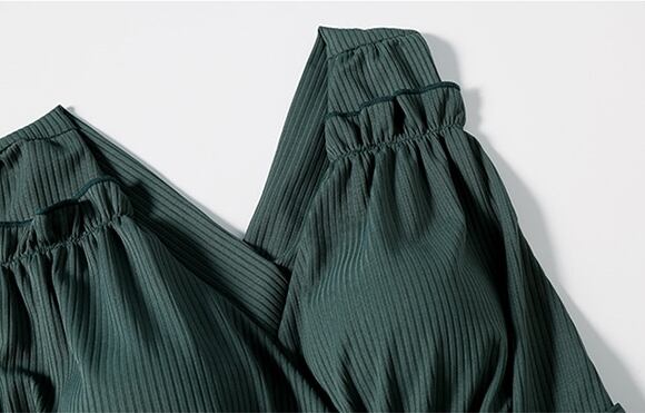 細めストライプとシックなグリーンがヴィンテージな雰囲気を纏うワンピース水着です。