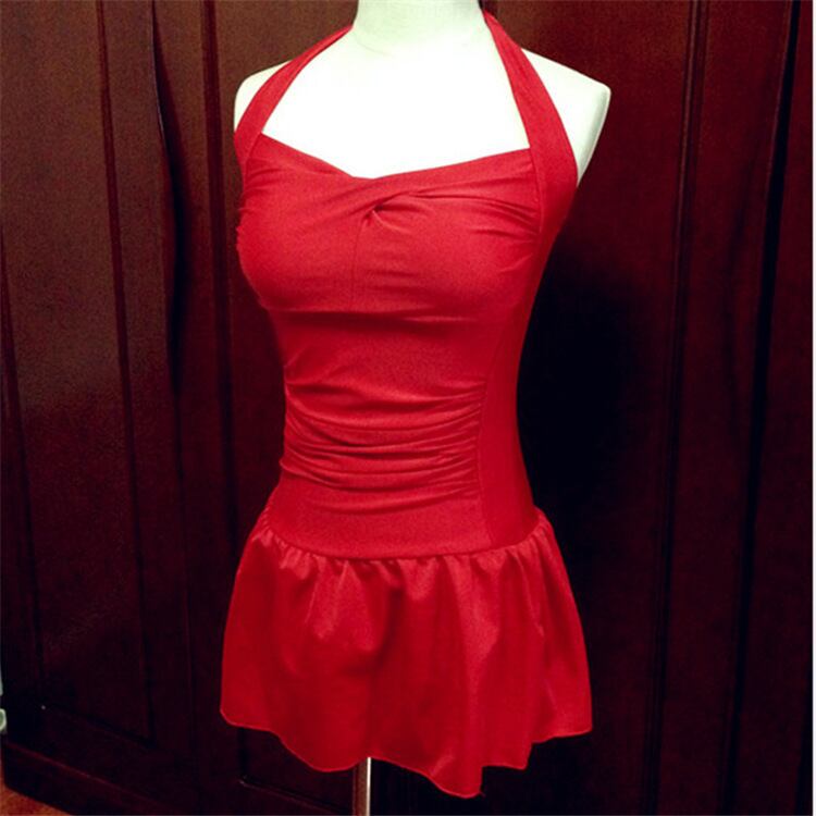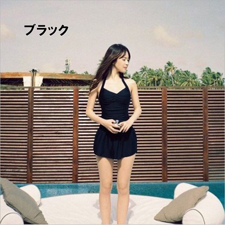 水着 レディース 送料無料 3色 ピンク レッド ブラック ミニワンピース フレア ホルターネック バックコンシャス シャーリング ギャザー 切り替え フロントクロスワンピース水着 セクシー 体型カバー おしゃれ 可愛い レトロ クラシカル クロスネック スカート フレア オリエンタル 10代 20代 30代 40代