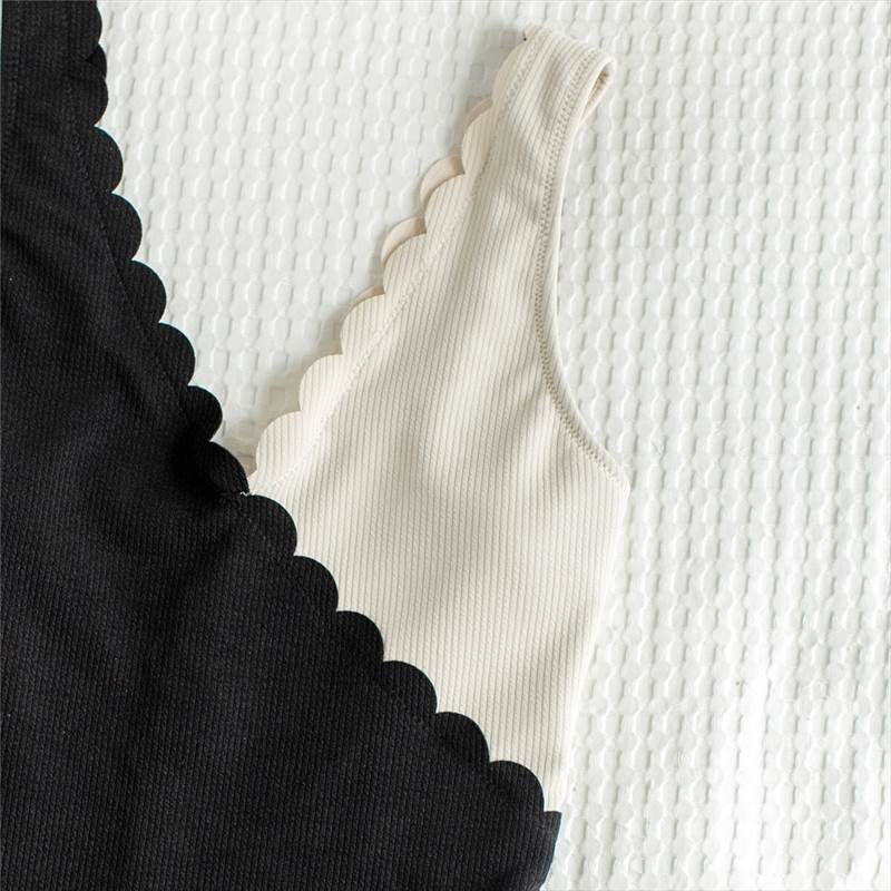 水着 レディース 送料無料 モノキニ ブラック スカラップ Vネック バイカラー オールインワン タンクトップ サイドオープン フリル バイカラー ミニマル スタイル 着痩せ 体型カバー インスタ トレンド きれいめ かわいい セクシー エレガント フェミニン ストレッチ 伸縮性 ナチュラル リラックス リゾートキュート ガーリー 大人かわいい ワンピース スイムウェア 海 ビーチ プール 温泉 旅行 海水浴