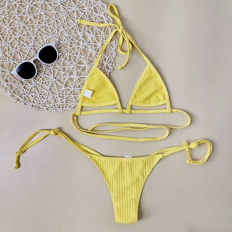 水着 レディース 送料無料 3色 ブルー ブラウン イエロー レースアップ リボン カットアウト ハイレグ ビキニ ニット リブ タンキニ カラフル 水着セット セット 上下セット 2点セット セクシー 紐ビキニ ブラジリアン トライアングルビキニ ストラップ Tバック ホルターネック 大人 きれい かっこいいシンプル 10代 20代 30代 40代