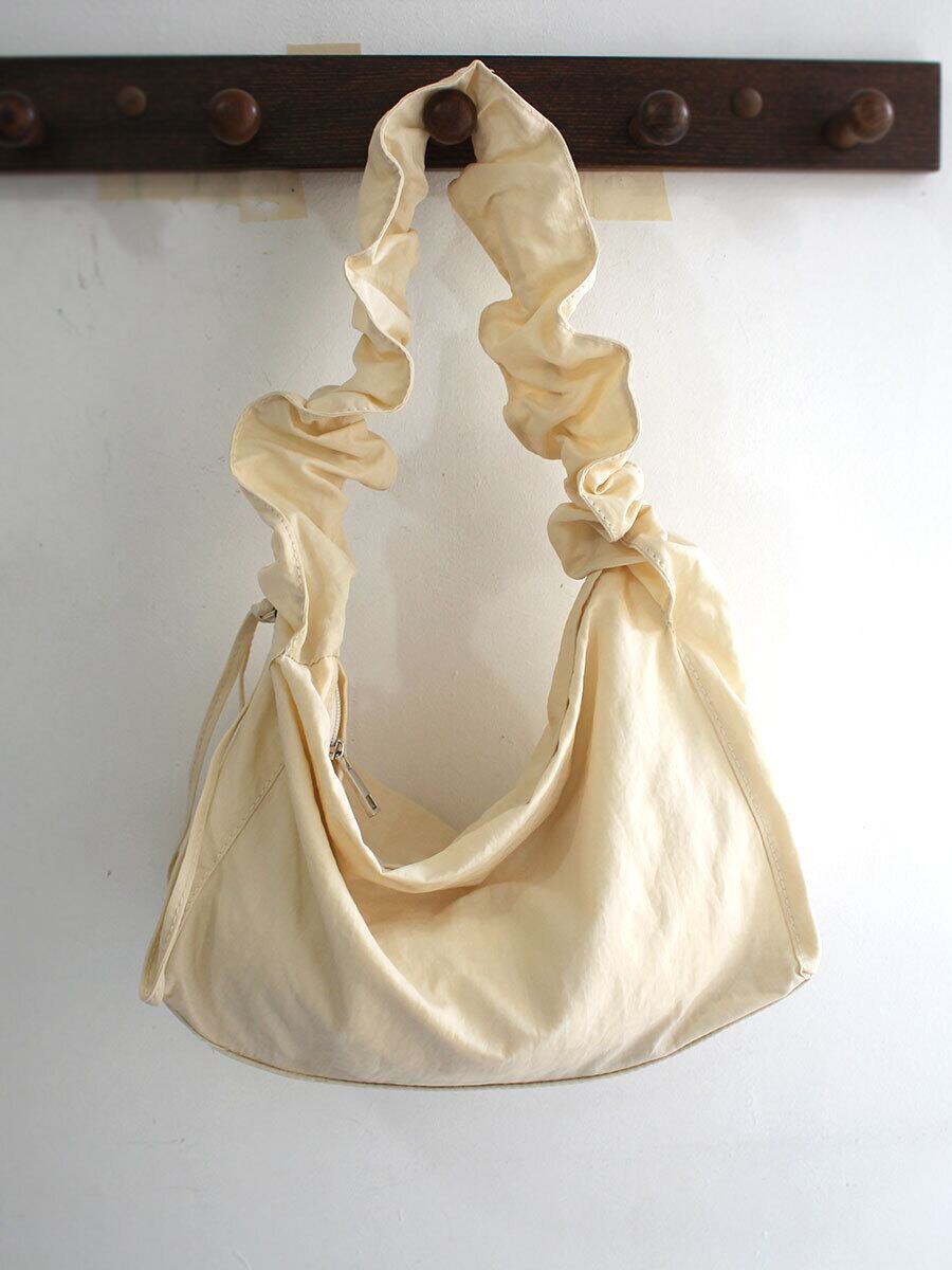 バッグ バック カバン かばん 鞄 bag レディースバッグ レディースバック 肩がけバック 肩掛けバック スクエア型 四角 フリル ポケット かわいい シンプル カジュアル おしゃれ お洒落 レトロ こなれ感 ラフ ラブリー キュート ガーリー 個性的 抜け感 学生風 ベーシック 無地 10代 20代 30代 40代 50代 60代 レディース 女性用 OL 学生 お出かけ 休日 ショッピング 買い物 デイリー 普段使い 春 夏 秋 大きめ 大容量 オフホワイト クリーム 黒 ブラック グレージュ