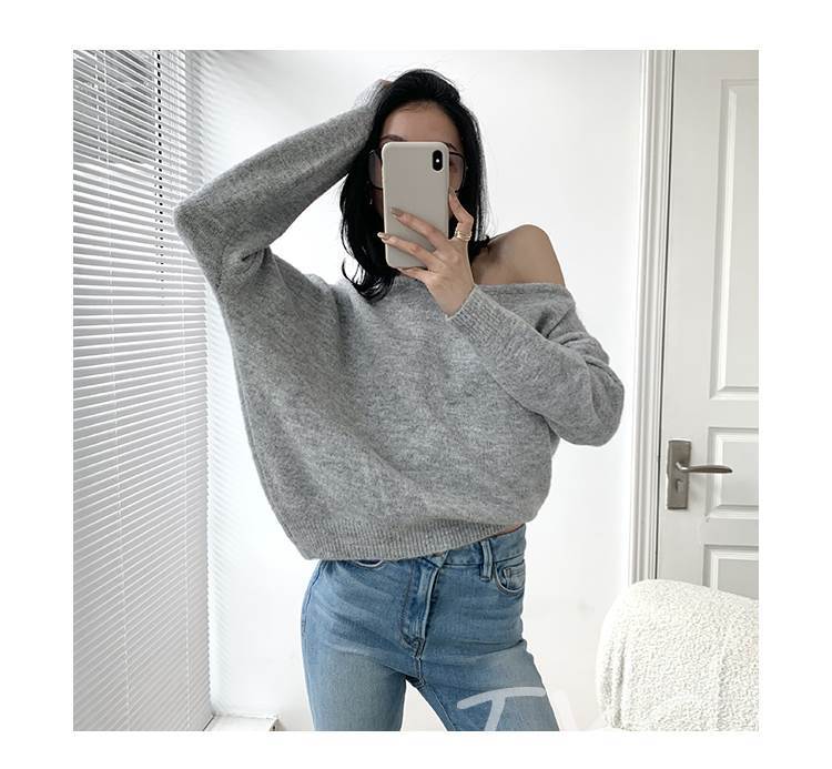 アシンメトリー トップス ニットソー セーター 袖あり 長袖 ラウンドネック オフショルダー オフショル ワンショルダー ワンショル かわいい 大人可愛い シンプル おしゃれ お洒落 ラフ ガーリー セクシー とろみ感 無地 春 秋 10代 20代 30代 レディース 女性用 デート お出かけ お泊まり 休日 旅行 着回し 普段使い 韓国 韓国系 オルチャン ファッション コーデ モテ S M ホワイト ブラック グレー