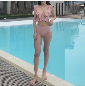 フェミニンでキュートな水着セットです。オフショルにも出来る2wayデザインです。