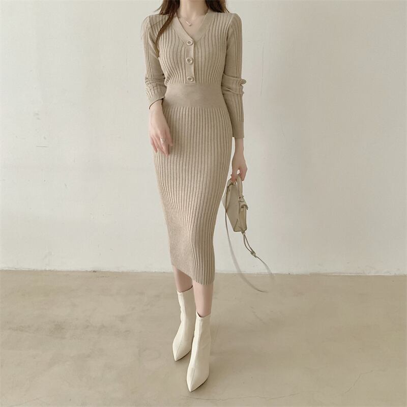 ワンピース ロング ロング丈 袖あり 長袖 Vネック 襟なし スリム タイト 細身 ストレート ウエストマーク ハイウエスト かわいい 大人可愛い きれいめ シンプル 大人 上品 おしゃれ お洒落 大人女子 こなれ感 セクシー とろみ感 無地 春 秋 冬 10代 20代 30代 40代 レディース 女性用 デート お出かけ 休日 旅行 ホテル ガーデン レストラン 着回し 普段使い 韓国系 オルチャン ファッション スタイル コーデ S M L XL 大きいサイズ ブラック 黒 ホワイト 白 ベージュ