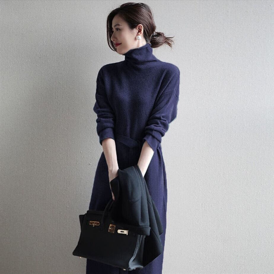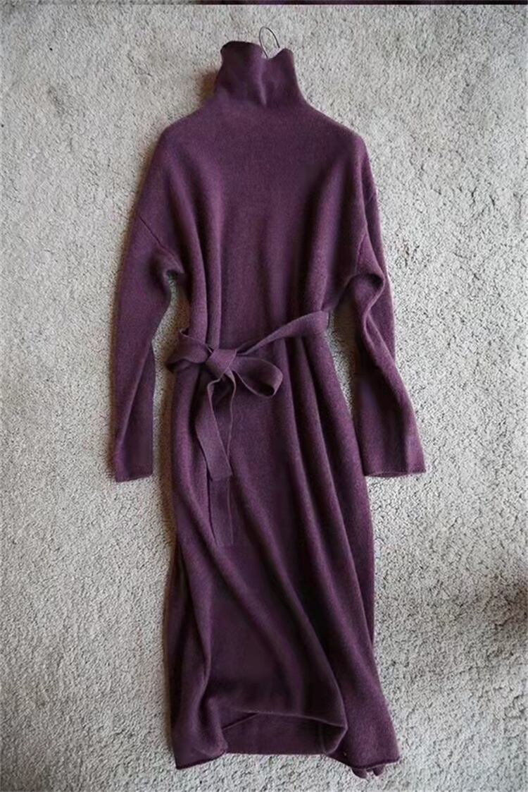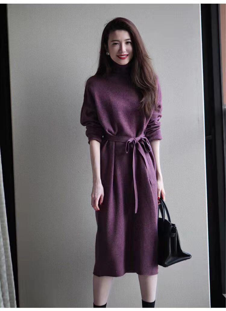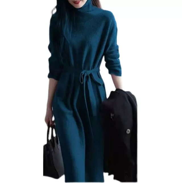 ニットワンピース ワンピース 膝丈 ひざ丈 袖あり 長袖 ドロップショルダー ハイネック 襟なし リボン ウエストリボン ハイウエスト かわいい 大人可愛い 大人 上品 おしゃれ お洒落 大人女子 ラブリー キュート 抜け感 スマート 無地 春 秋 冬 ロングシーズン 10代 20代 30代 40代 レディース 女性用 ママ ママコーデ 学生 デート お出かけ 女子会 お茶会 ランチ ショッピング 着回し 普段使い 重ね着 モテ スタイルアップ S M L ブルー パープル ネイビー レッド グリーン