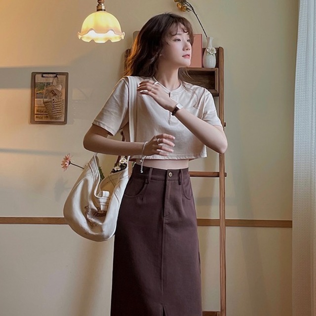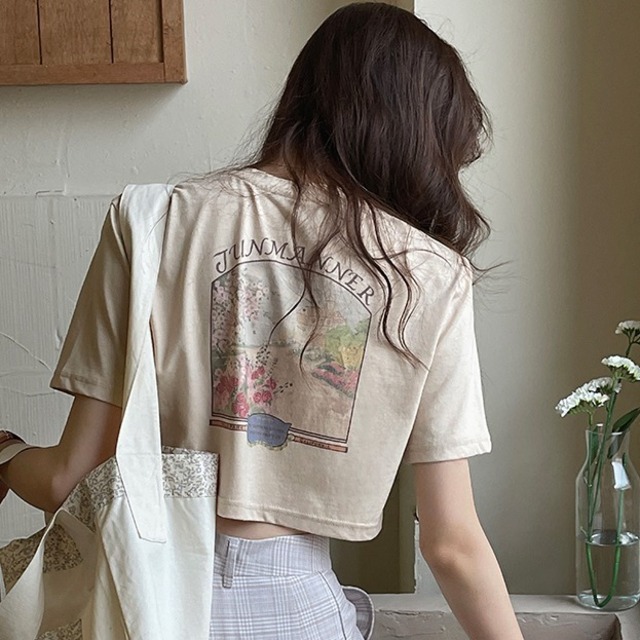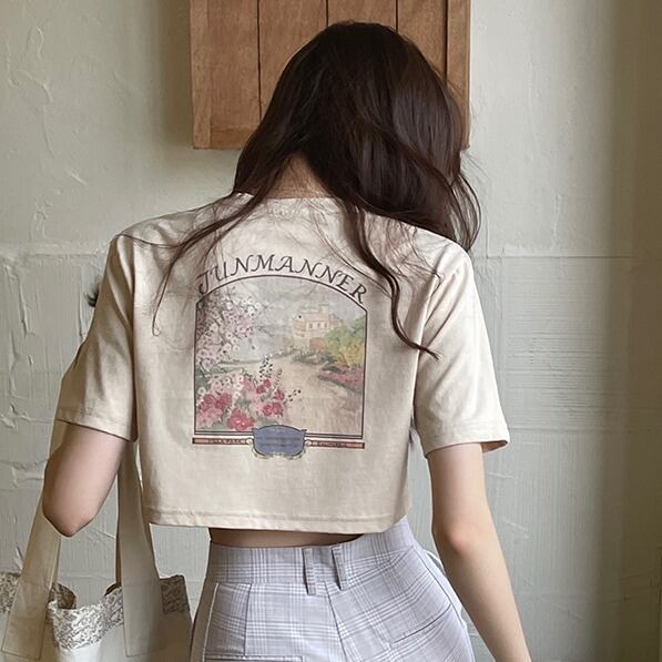 トップス Tシャツ ミニ ミニ丈 袖あり 半袖 ラウンドネック ベースボールカラー 薄手 大人可愛い きれいめ シンプル カジュアル おしゃれ お洒落 レトロ ヴィンテージ こなれ感 ラフ キュート ルーズ 個性的 ラグジュアリー 抜け感 ベーシック 柄 プリント 夏 10代 20代 30代 レディース 女性用 女の子 OL 学生 デート お出かけ 休日 運動 スポーツ ジム ダンス イベント 海 プール ショッピング 着回し 普段使い 韓国系 楽ちん モテ トレンド S M L ゆったり ベージュ