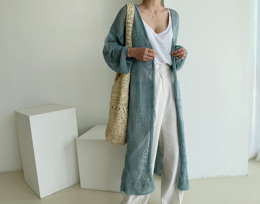 透け感のあるレースデザインが涼しさをプラスし、存在感のあるハイウエストのウエストリボンが、美しいシルエットを描いてくれるロングカーディガン。10代~40代まで幅広い層におすすめできる、上品かつおしゃれなアイテムです。