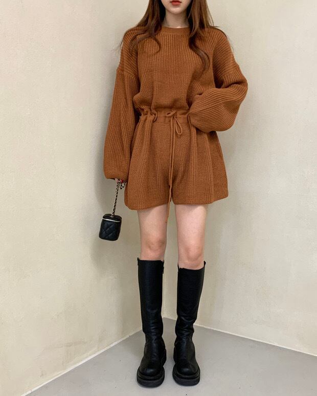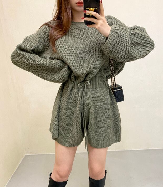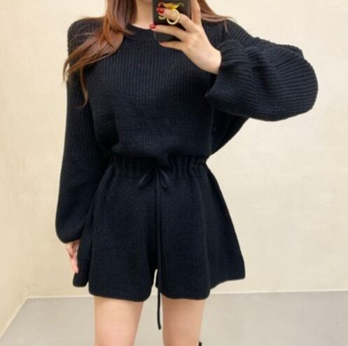 オールインワン アプリコット オレンジ グリーン ブラックジャンプスーツ ショート ショート丈 袖あり 長袖 ボリューム袖 ラウンドネック 襟なし ウエストマーク ウエストリボン ハイウエスト ニット お得 かわいい 大人可愛い 大人 上品 おしゃれ お洒落 大人女子 ラブリー キュート 存在感 無地 春 秋 冬 ロングシーズン 10代 20代 30代 レディース 女性用 学生 デート お出かけ 公園 女子会 休日 ランチ 着回し 普段使い 重ね着 オルチャン モテ フリーサイズ ワンサイズ