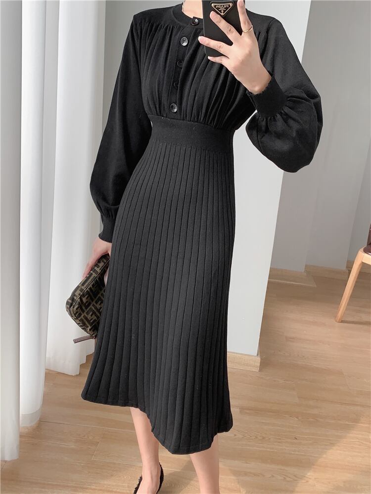 ニットワンピース ワンピース 膝丈 ひざ丈 袖あり 長袖 ラウンドネック 襟なし ウエストマーク ハイウエスト ニット お得 かわいい 大人可愛い きれいめ 大人 上品 おしゃれ お洒落 大人女子 ラブリー キュート エレガント 存在感 無地 春 秋 冬 入学式 入園式 卒業式 卒園式 ロングシーズン 20代 30代 40代 レディース 女性用 ママ お出かけ パーティー イベント ホテル レストラン ランチ 着回し S M L XL