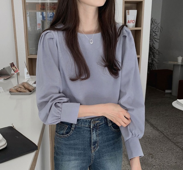 トップス シャツ ブラウス 袖あり 長袖 ボリューム袖 ラウンドネック 襟なし お得 かわいい 大人可愛い きれいめ 大人 上品 おしゃれ お洒落 清楚 大人女子 ガーリー 存在感 フォーマル 抜け感 知的 爽やか スマート 無地 春 秋 冬 入学式 入園式 卒業式 卒園式 ロングシーズン 10代 20代 30代 40代 50代 レディース 女性用 ビジネス OL 通勤 女子会 イベント レストラン お呼ばれ 着回し 普段使い 重ね着 モテ 二の腕カバー S M L XL アプリコット ブルー